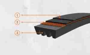 Elasticated Poly-V Belts Features Low noise levelsThe self-tensioning property, maintains the Belt tension through its lifeEnhanced power transmission because of optimum contact areaEasy installationIncreased service lifeMoulded Belts offer superior dimensional stabilityTemperature range: -25°C to +110°C Constructional Details Top rubber specially designs for better lateral stiffness & flexibility. It protects the belt from external agents such as Oil, grease, dust etcSpecially designed Polyamide tension member for easy installation & to self-maintain uniform tension throughout the belt lifeTHe rubber compound of high abrasion & thermal resistance to maintain the profile dimension for longer service life Product Range SectionThickness (mm)Rib Pitch (mm)No. of Possible RibsManufacturing RangeLength Desg.Min. (mm)Max. (mm)PK (Moulded)4.53.562 to 242502500LePK4.53.562 to 247202500Le Note Moulded Belt-range is exhaustive. Specific Belt length can be manufactured, based upon the availability of mould Applications Automotive engines Product Range