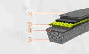 Multi-layer fabric provides extra strength, acts as a crack-barrier in reverse bend conditions, offers superior wear resistance, allows the Belt to dis-engage smoothly during clutching operation, and increases service life