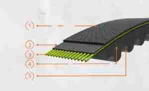 Textile Machinery, Moulded Raw Edge Cogged Belts Features Specially designed to meet high power transmission requirements in textile spinning machinesSpecially treated aramid cord for high tensile strengthUnique cog profile and compound to provide excellent grip over changing speed drivesTemperature range: -25°C to +100°C Constructional Details CR impregnated cotton – polyester blended top fabric jacketingSpecially compounded cushion rubberSpecially treated aramid cord for high tensile strengthFibre-filled Polychloroprene base compoundMoulded cogs for better flexibility Product Range SectionTop Width (mm)Thickness (mm)Angle (Degree)Length (mm)Length Designation62x22I-174562.022.0301745Li70x22I-170070.022.0301700Li70x22I-180070.022.0301800Li70x30I-181070.030.0301810Li Note Other sizes are available on request Applications Spinning mills, ring frames, etc. Product Label