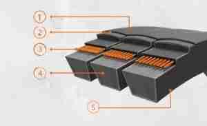 Banded Wrap Belts Features Enhanced power transmission capacity up to 25%, compared to standard BeltsFewer belts are required as compared to multiple single-belt drive systemExtended service lifeTop curvature provides superior adhesion and accelerates heat dissipation rateControlled radial and lateral run-out facilitates smooth operationAnti-static, oil and heat resistantTemperature range: -18°C to +80°C Constructional Details Special Curved top tie band design for better flexibility and heat resistanceHigh modulus – low shrinkage tension member embedded cushion rubber compoundHigh tenacity, low stretch specially treated polyester cordSpecially designed compression rubber gives stability to the Belt cross-section and supports the cord zone against deflection, under load conditionWear-resistant, bias-cut neoprene rubberized polyester cotton fabric Product Range SectionTop Width (mm)Thickness (mm)Angle (Degree)Pitch (mm)Min. Pulley Dia. (mm)Manufacturing RangeLength Desg.Min. (inch / mm)Max. (inch / mm)A13.010.54015.98033 / 838100 / 2500LiB17.014.54019.013043 / 1092100 / 2500LiC22.017.04025.521047 / 1194100 / 2500LiD32.021.54037.037090 / 2286100 / 2500LiE38.027.04044.552090 / 2286100 / 2500LiSPZ10.010.04012.06746.5 / 1180100 / 2500LpSPA13.012.04015.010038 / 959100 / 2500LpSPB17.017.04019.016069.5 / 1762100 / 2500LpSPC22.022.54025.522464 / 1632100 / 2500Lp3V9.710.54010.36745 / 1143100 / 2500La5V15.816.54017.518050 / 1270100 / 2500La8V25.425.04028.6317100 / 2500100 / 2500La Note Intermediate sizes are available upon request Reference Standards BS 3790, ISO 5290 & RMA IP-22 Applications Crushers, pulverisers, pulpers, compressors, vibrating screens, generators, rolling mills, etc. Product Label